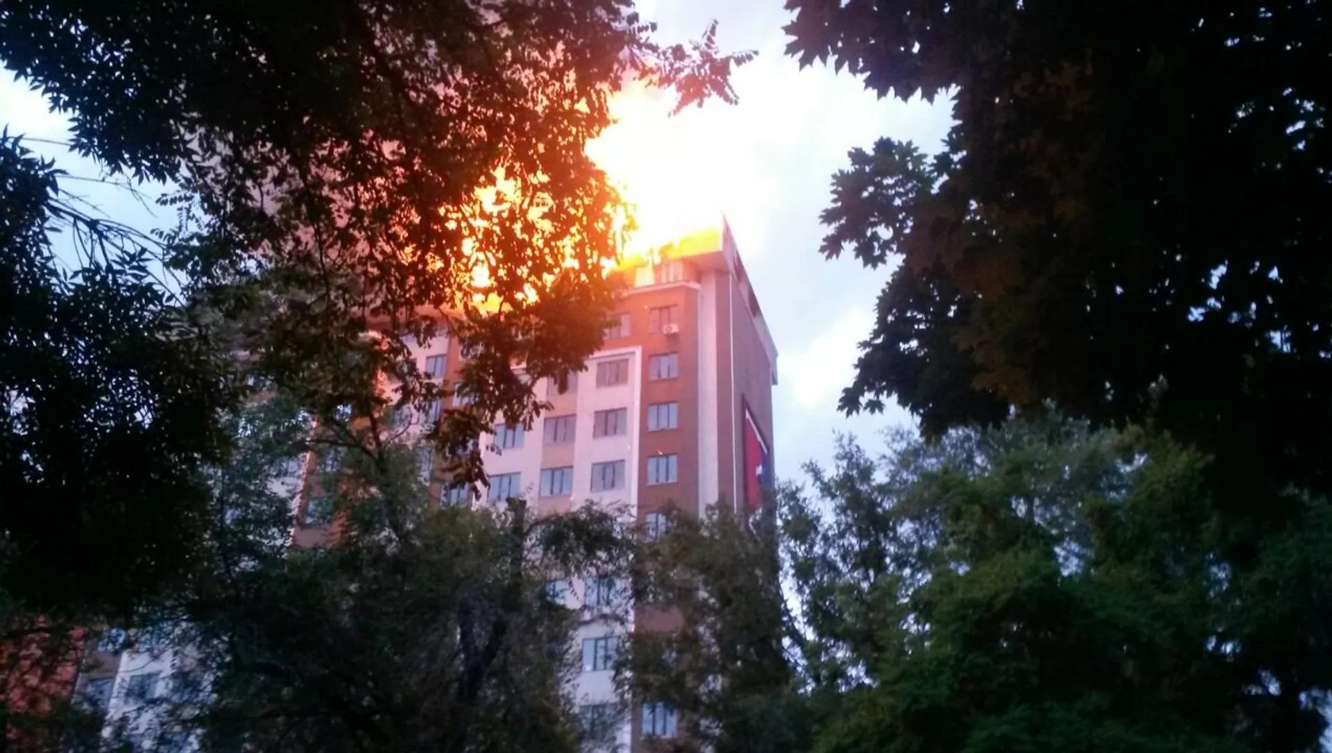 В центре столицы на пересечении улиц Панфилова и Фрунзе горят кровля и пентхаус 12-этажного элитного дома — около 1 000 квадратных метров. Территория вокруг здания оцеплена, стянуто более полусотни сотрудников милиции.