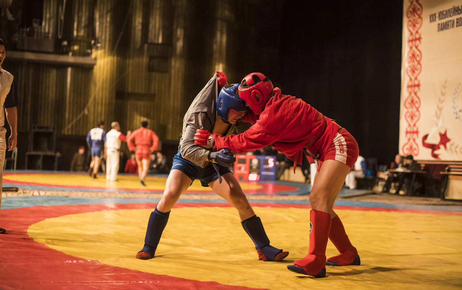 Разрешается проводить атакующие и защитные действия: броски, удержания, болевые приемы и другие. Продолжительность схватки для мужчин составляет 5 минут, для женщин — 4. Утешительные поединки длятся 3 минуты.