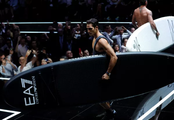 © REUTERS / Stefano Rellandini На показе Emporio Armani победил спортивный стиль: модели выходили на подиум, как на морское побережье На показе Emporio Armani победил спортивный стиль: модели выходили на подиум, как на морское побережье