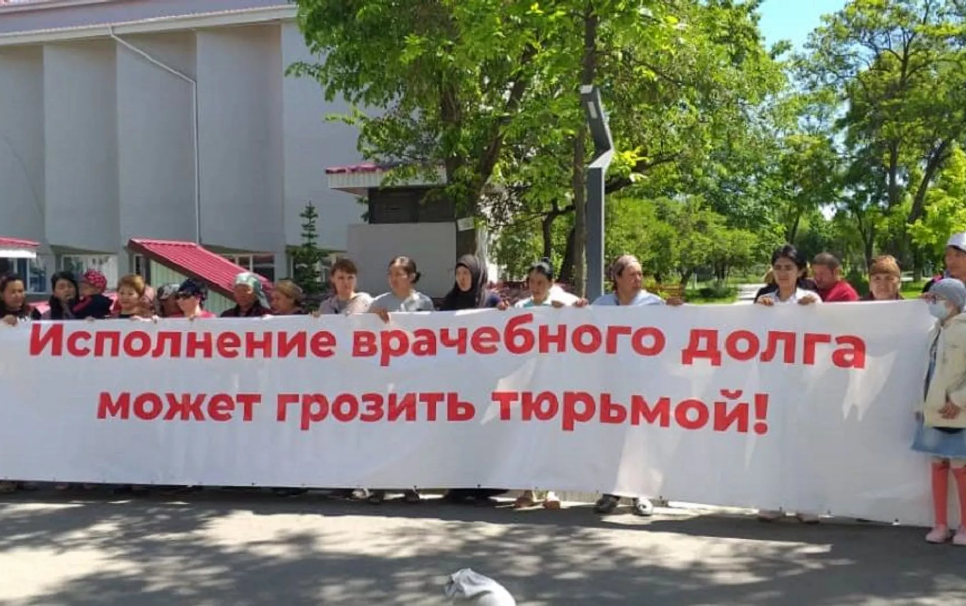 Жунушалиева рассказала, что Макимбетов — единственный детский хирург больницы. Митингующие, по ее словам, требуют изменить ему меру пресечения на домашний арест.