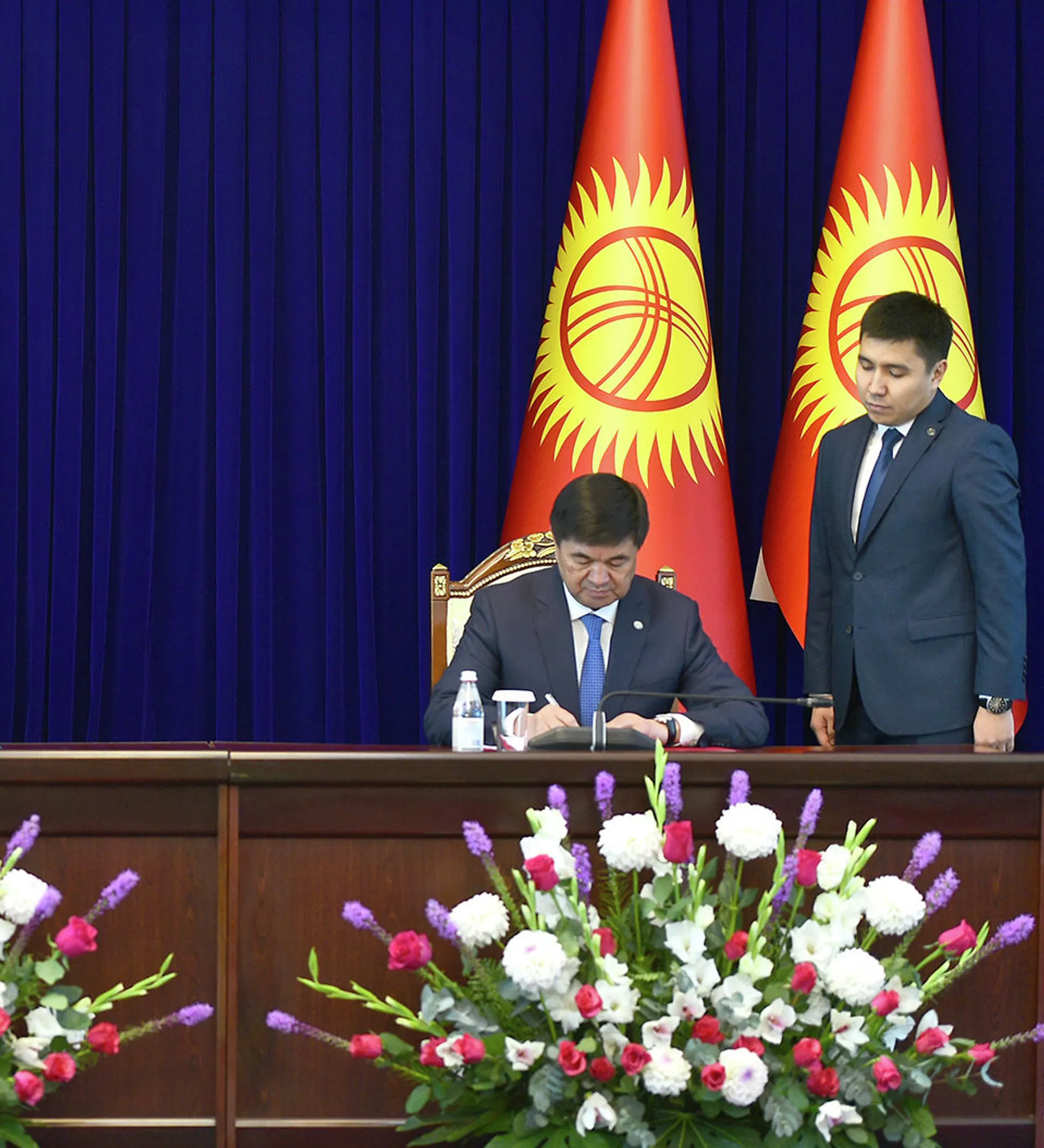 Мамин прибыл в Кыргызстан сегодня, 12 июля. В рамках визита прошла встреча с Мухаммедкалыем Абылгазиевым и заседание межправительственного совета.