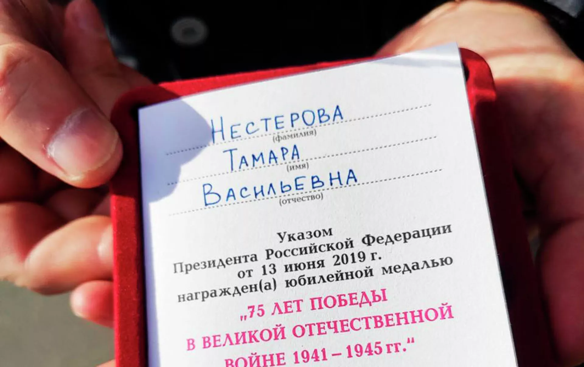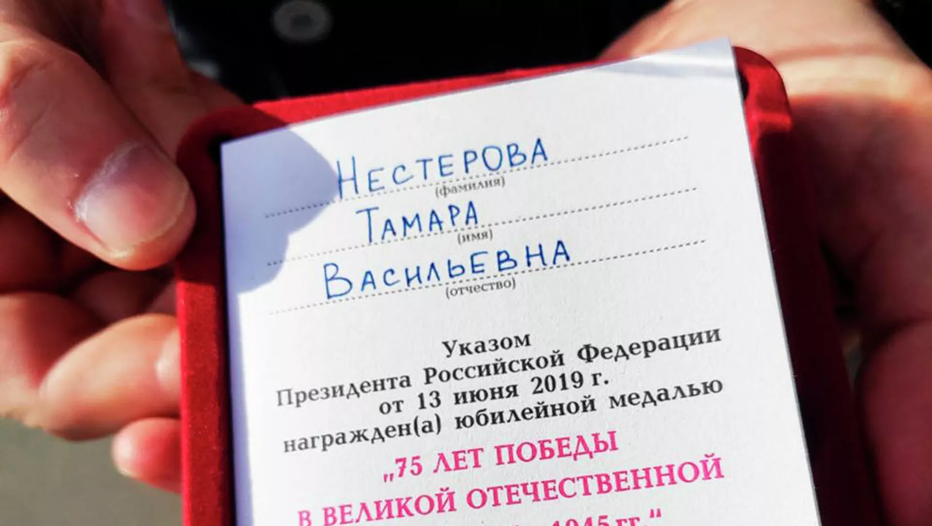 "В год 75-летия Победы во всех странах СНГ ветеранам, блокадникам, труженикам тыла, узникам концлагерей вручаются юбилейные медали от имени президента РФ. К сожалению, Тамара Васильевна больна, и родственники просили ее не беспокоить. Однако мы поздравляем блокадницу с Победой, передаем ей через внука награду, цветы и фрукты, а также желаем скорейшего выздоровления", — сказал Сургаев.