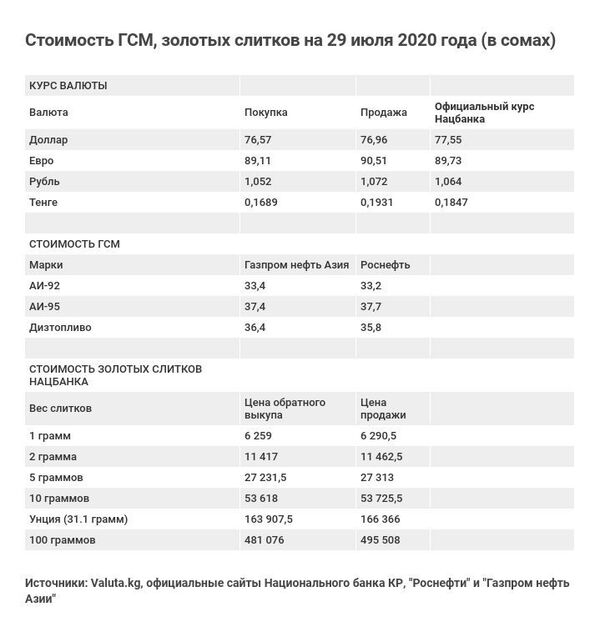Указанный курс валюты основан на данных Национального банка КР (официальный) и портала Valuta.kg. В последнем случае приводится стоимость как покупки, так и продажи.