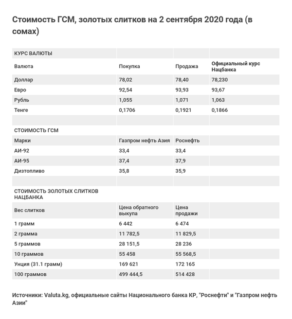 Указанный курс валюты основан на данных Национального банка КР (официальный) и портала Valuta.kg. В последнем случае приводится стоимость как покупки, так и продажи.