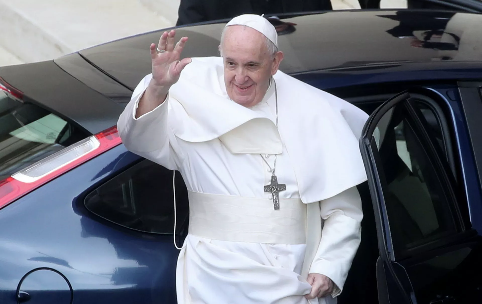 Как пишут "Известия", электромобиль будет изготовлен на базе кроссовера компании, начало производства которого запланировано на ноябрь текущего года. Защитный купол в машине понтифика будет при необходимости прятаться в крышу.