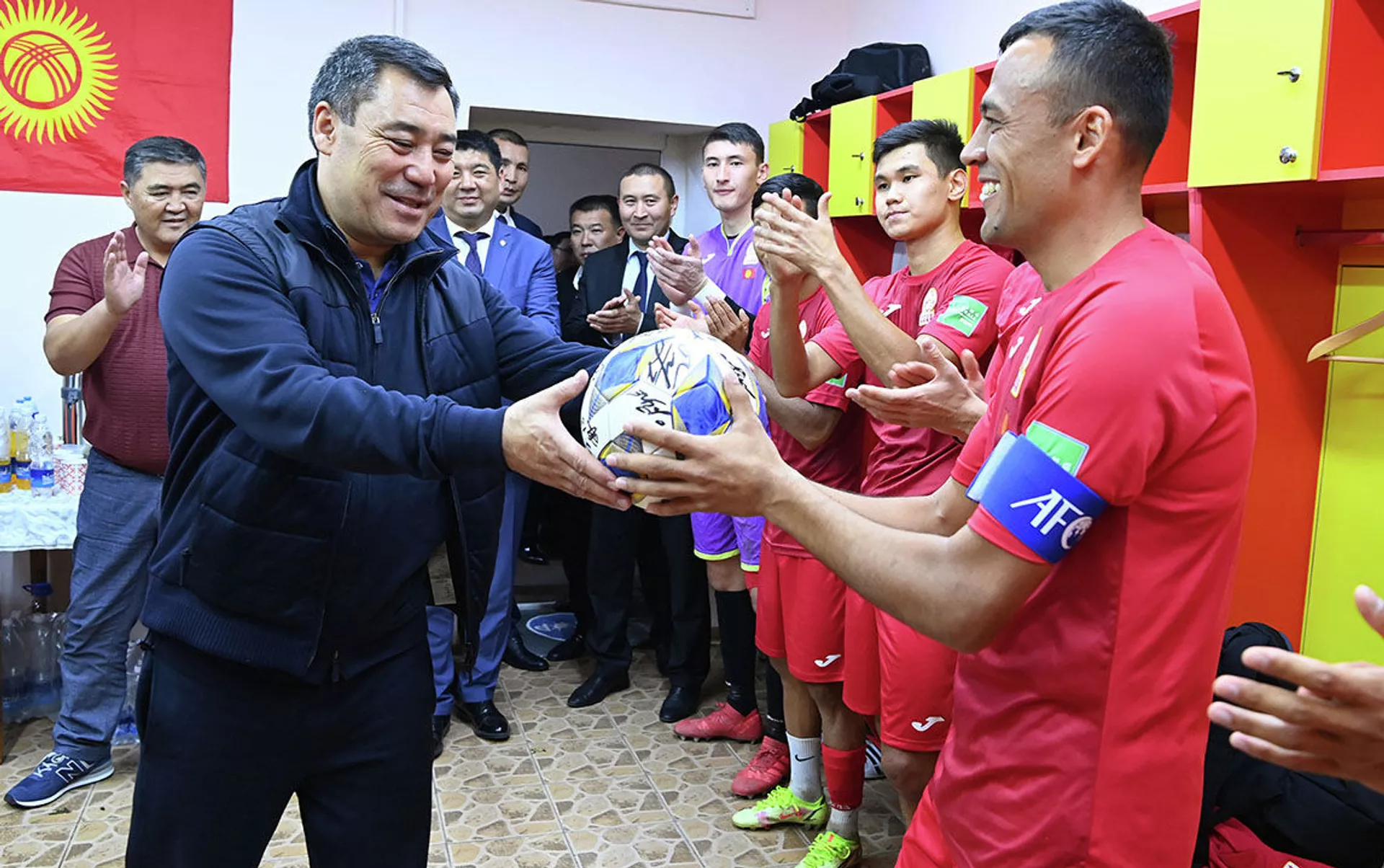 "По завершении матча Жапаров зашел в раздевалку сборной Кыргызстана, чтобы поздравить спортсменов с уверенной победой. Он отметил, что команда показала достойную и интересную игру. Президент выразил слова благодарности футболистам и тренерам за подаренные положительные эмоции болельщикам", — рассказали в пресс-службе главы государства.