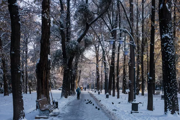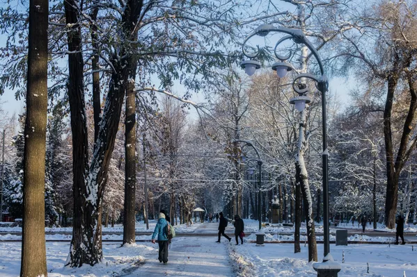 В Бишкеке в среду, 17 ноября, выпал снег. Горожане после теплых деньков вытащили шубы и сапоги, а морозное утро для неподготовленных автовладельцев стало неприятным сюрпризом. Городские дороги покрылись коркой льда, но благодаря муниципальным службам снегопад не привел к транспортному коллапсу. Хотя вечером многие горожане, выйдя с работы, не могли быстро уехать домой, на остановках скопились очереди. Несмотря на то что в соцсетях ругались на грязный снег, позже белоснежный покров накрыл город и преобразил его.
