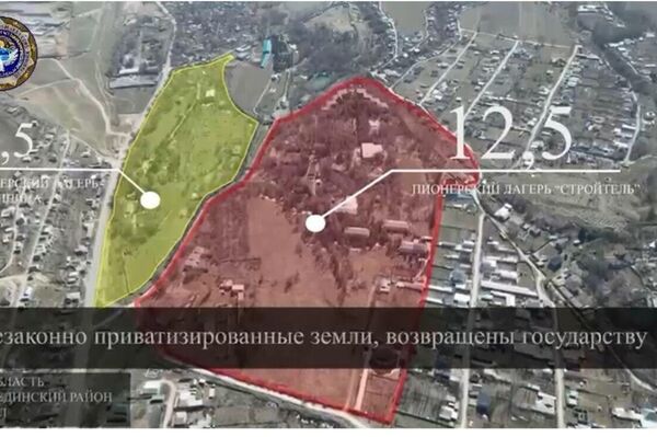 Установлено, что детские лагеря "Строитель" (12,5 гектара) и имени В. Дубинина (7,5 гектара) в селе Джал Аламудунского района Чуйской области, а также курортно-оздоровительный комплекс (1 гектар) в селе Кара-Ой Иссык-Кульской области были незаконно приватизированы с 1997-го по 2001 год по решениям отдельных акционерных обществ и государственных органов. После этого они перестали работать по прямому назначению, а их имущество распродали.