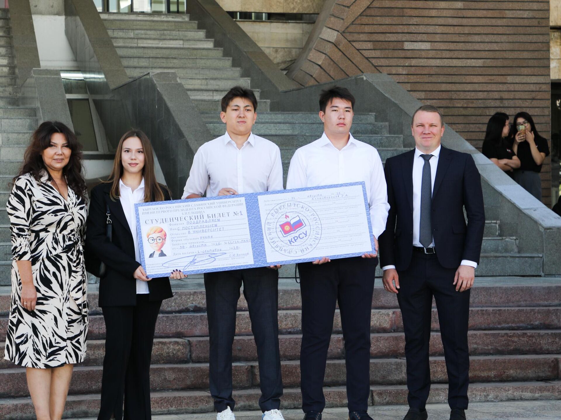 "Более 19 тысяч граждан Кыргызстана обучаются в российских вузах, а сегодняшние первокурсники КРСУ становятся частью этой большой и дружной семьи. Здесь, в Кыргызстане, вы получаете уникальную возможность получать российское образование, не выезжая за пределы республики, и одновременно открываете путь к академическим обменам, новым знакомствам и укреплению связей между нашими странами", — отметил он.