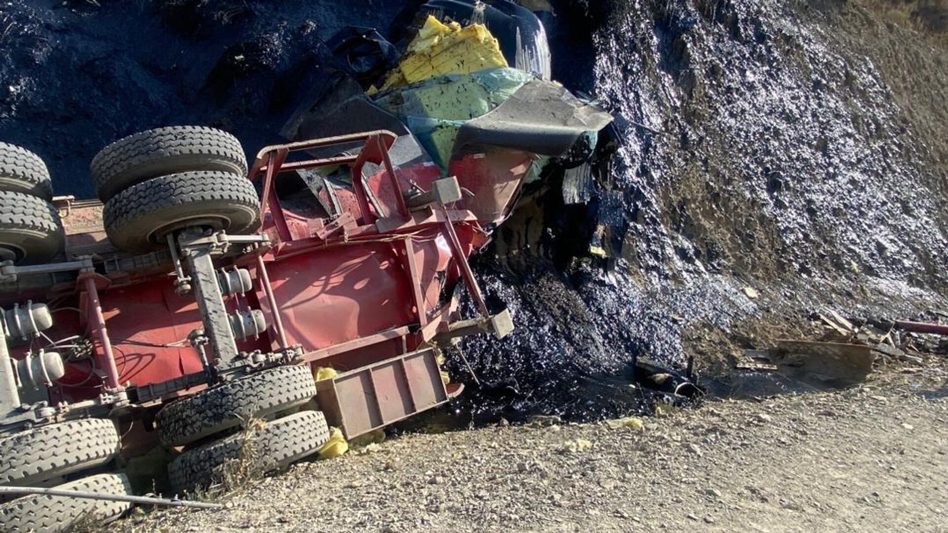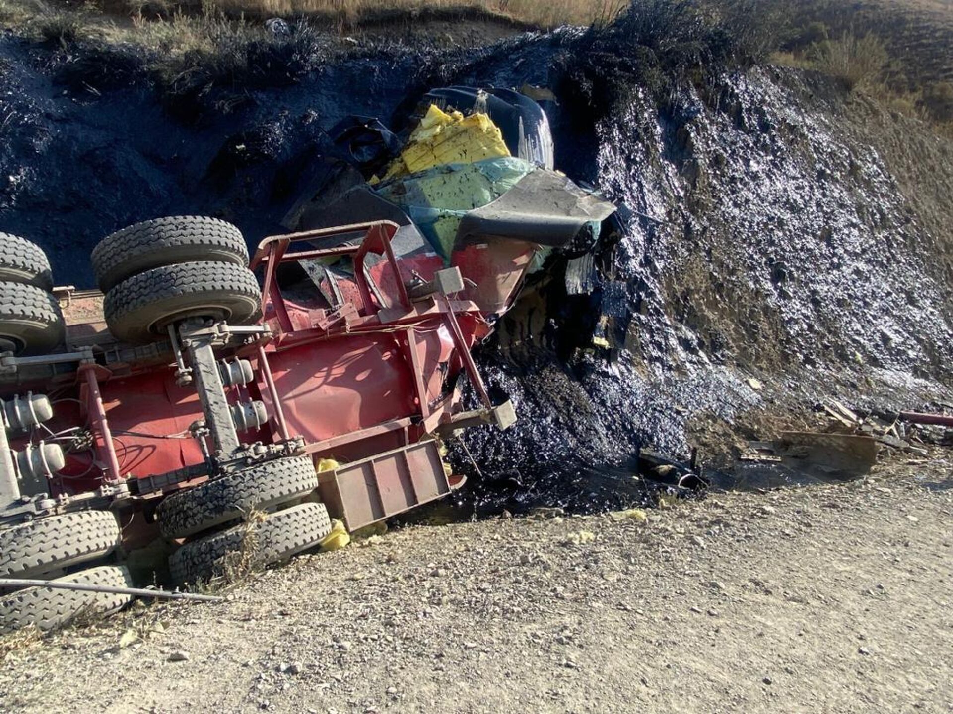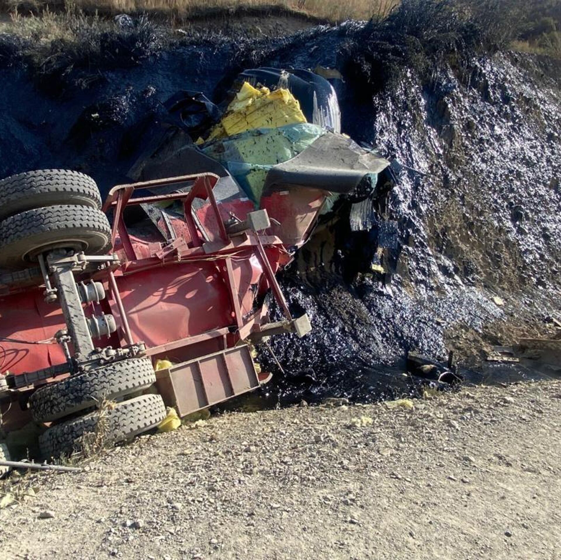 БИШКЕК, 16 сен — Sputnik. Грузовик нефтеперерабатывающего завода попал в ДТП на альтернативной трассе север — юг, в результате чего вылилось 35 тонн мазута, сообщает Служба экотехнадзора.