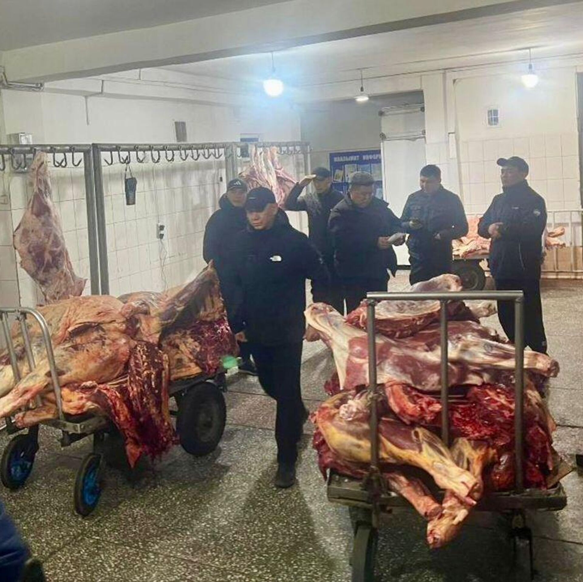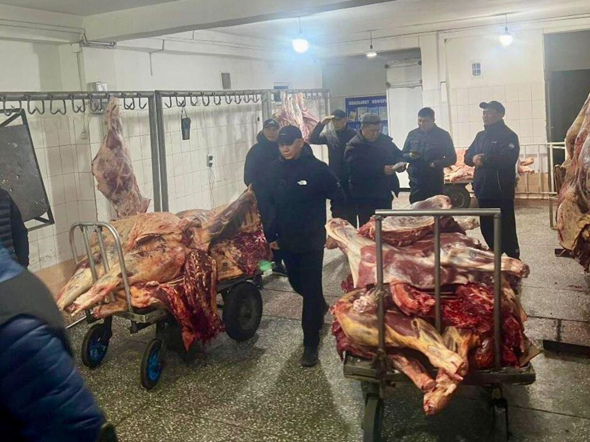 Сотрудники ГКНБ во время рейда по регулированию цен на мясо в Бишкеке. 18 ноября 2025 года