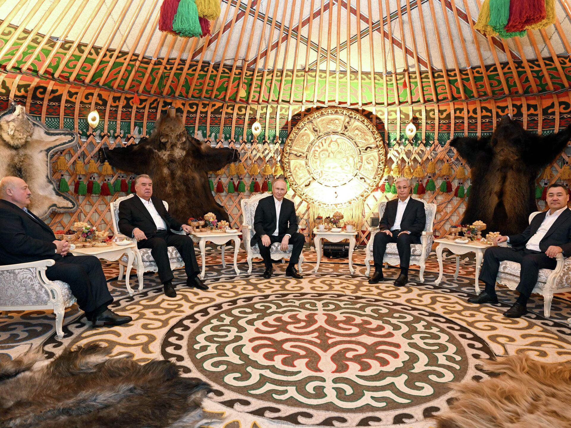 Жапаров подарил главам стран ОДКБ панно и музыкальные инструменты — фото