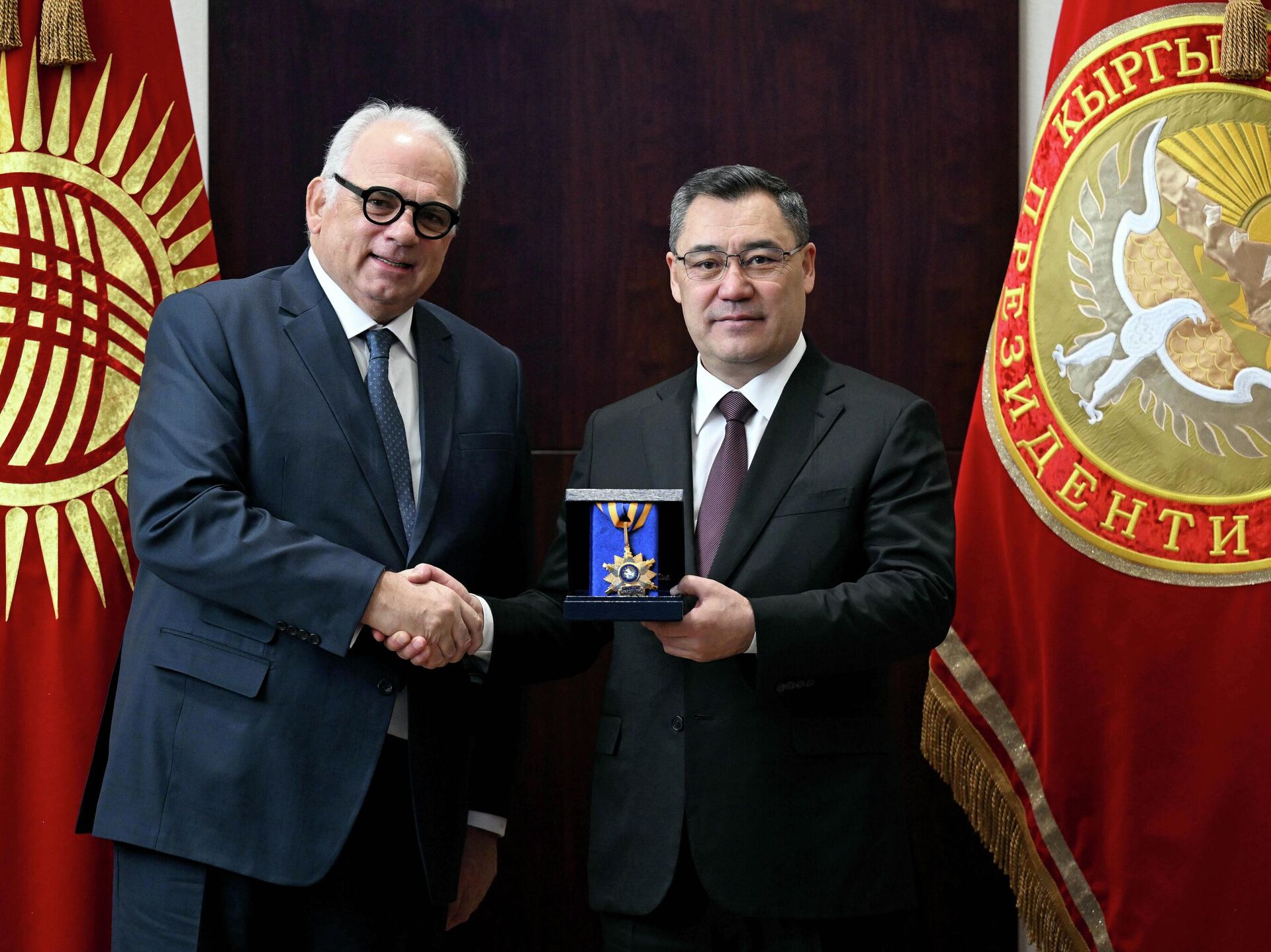 Ненад Лалович вручил главе государства орден UWW. Жапаров наградил гостей за значительный вклад в развитие спортивной борьбы в Кыргызстане и повышение ее статуса на мировой арене. Ненаду Лаловичу президент вручил орден "Достук", Мохаммеду Аль-Авамлеху — Почетную грамоту Кыргызской Республики.