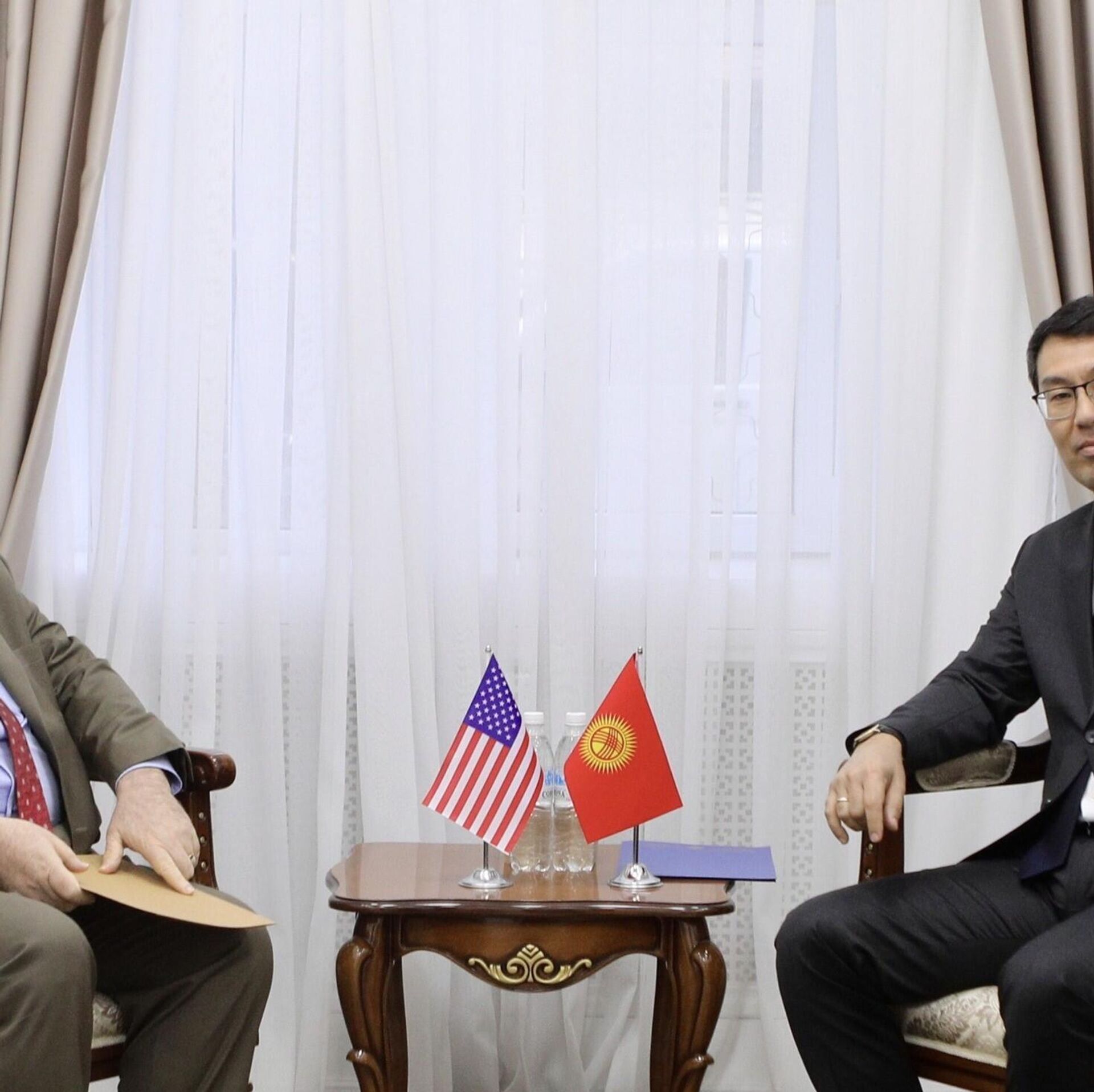 БИШКЕК, 13 янв — Sputnik. Заместитель министра иностранных дел Кыргызстана Медер Абакиров встретился с послом США Лесли Вигери. 13.01.2026, Sputnik Кыргызстан