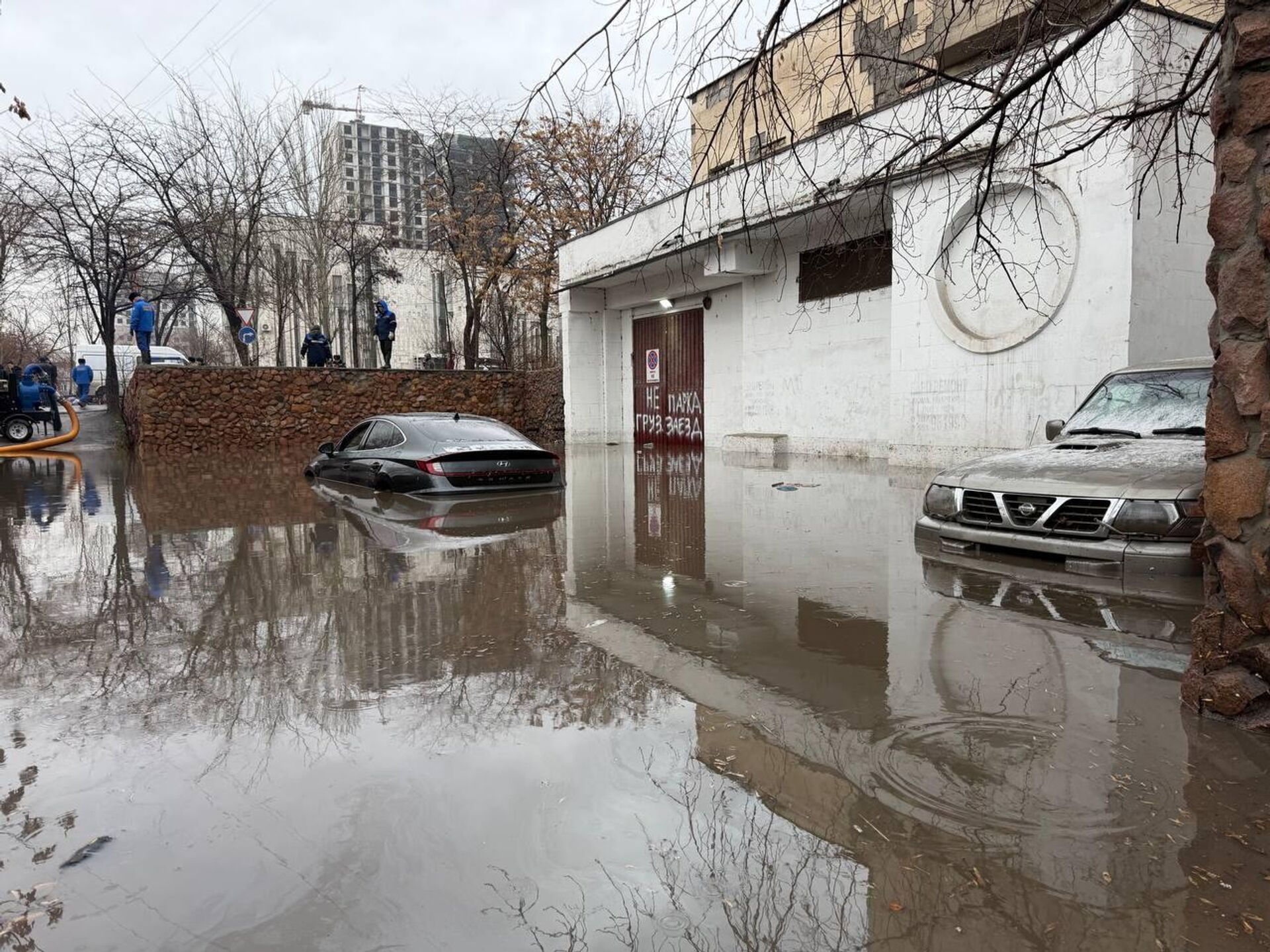 БИШКЕК, 13 фев — Sputnik. В районе центрального загса Бишкека произошло серьезное затопление после проливного дождя. Сотрудники МЧС откачивают воду.