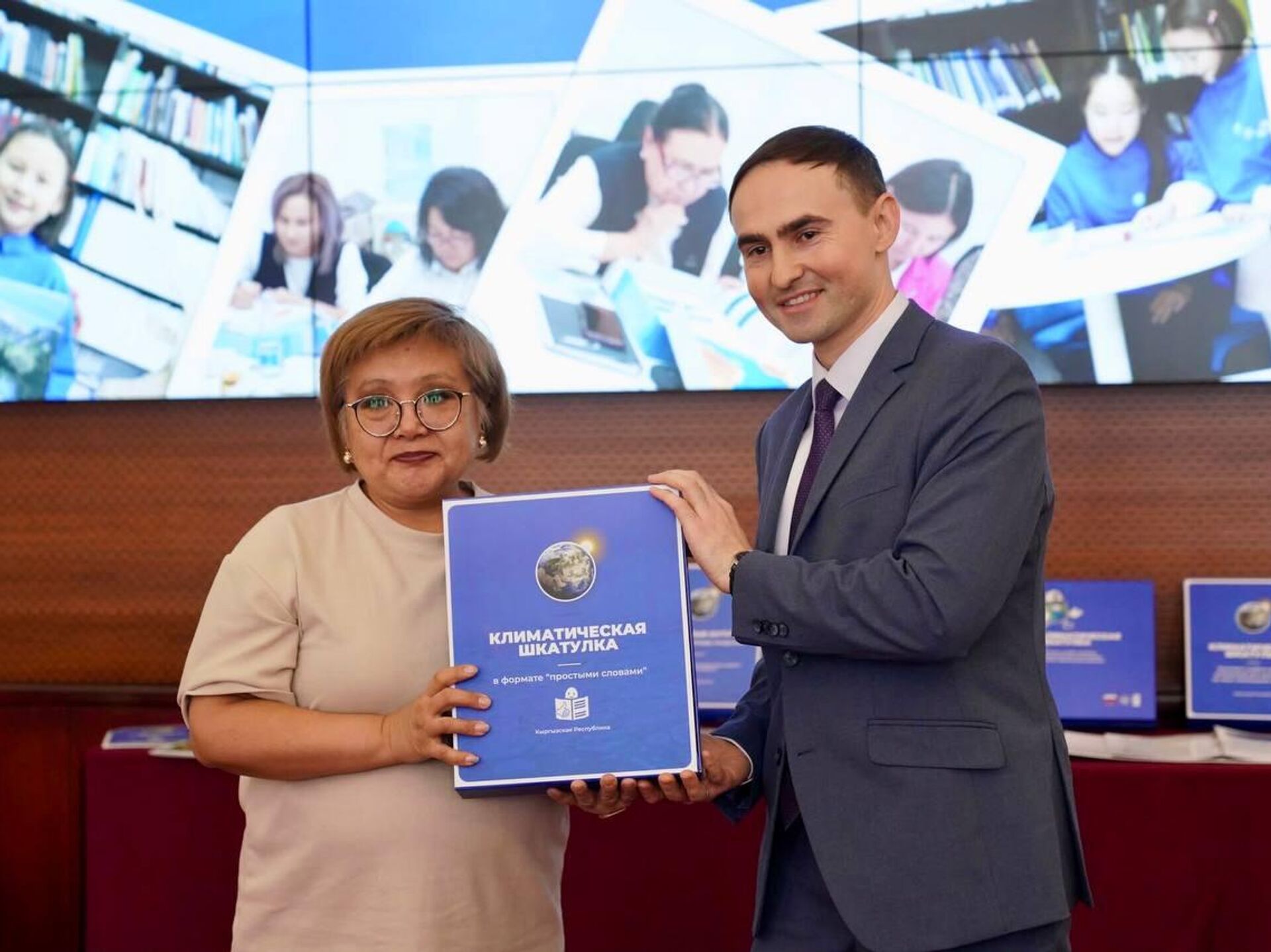 Торжественная церемония состоялась 11 марта при участии дипмиссии. Это интерактивная междисциплинарная инициатива, которая реализуется с ПРООН в Кыргызстане. В рамках проекта впервые подготовили адаптированные форматы для детей с особыми образовательными потребностями. Это 100 экземпляров easy-to-read ("простыми словами") и 40 — на шрифте Брайля. Это позволило расширить доступ школьников по всей стране к экологическому и климатическому образованию.