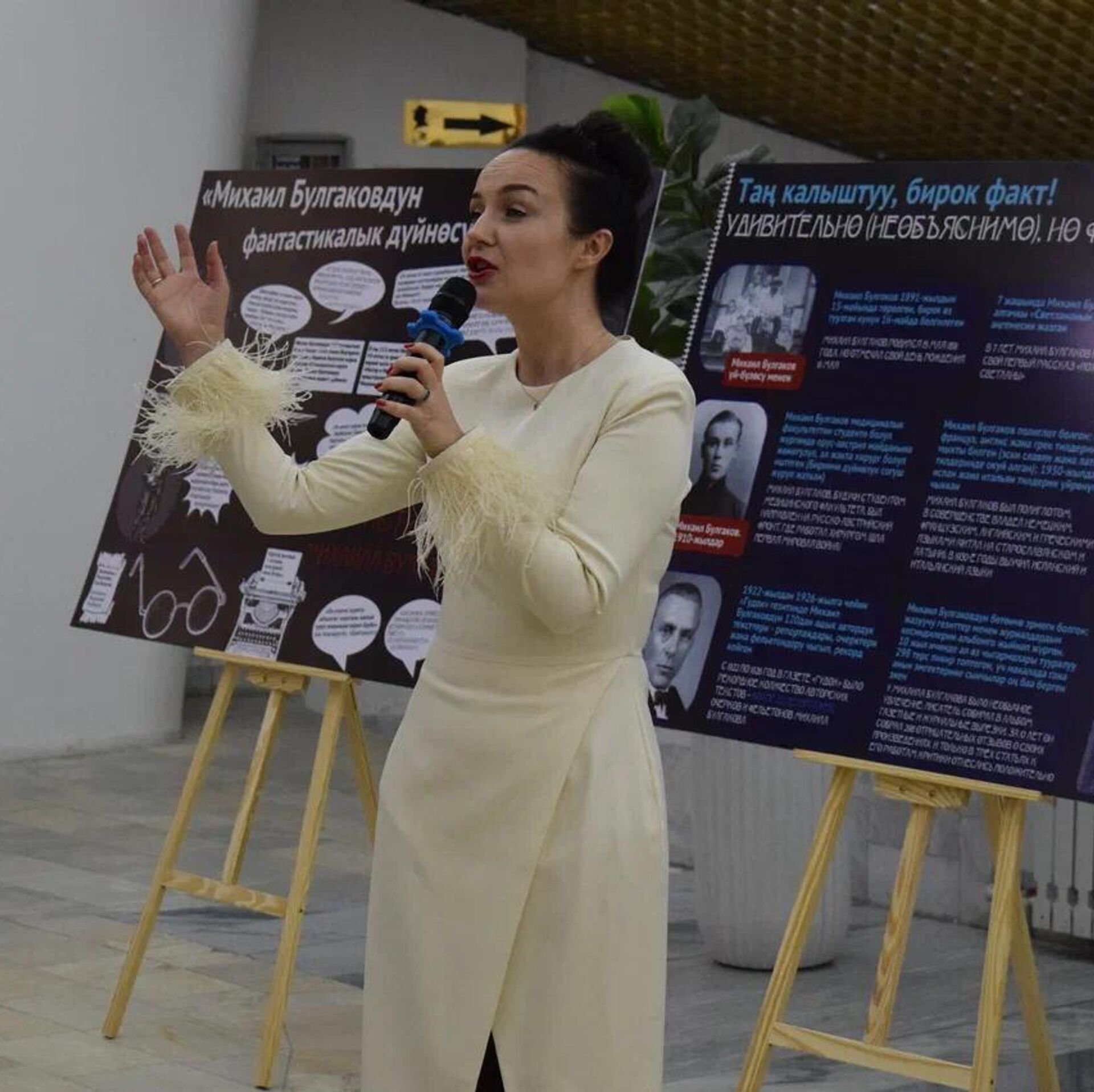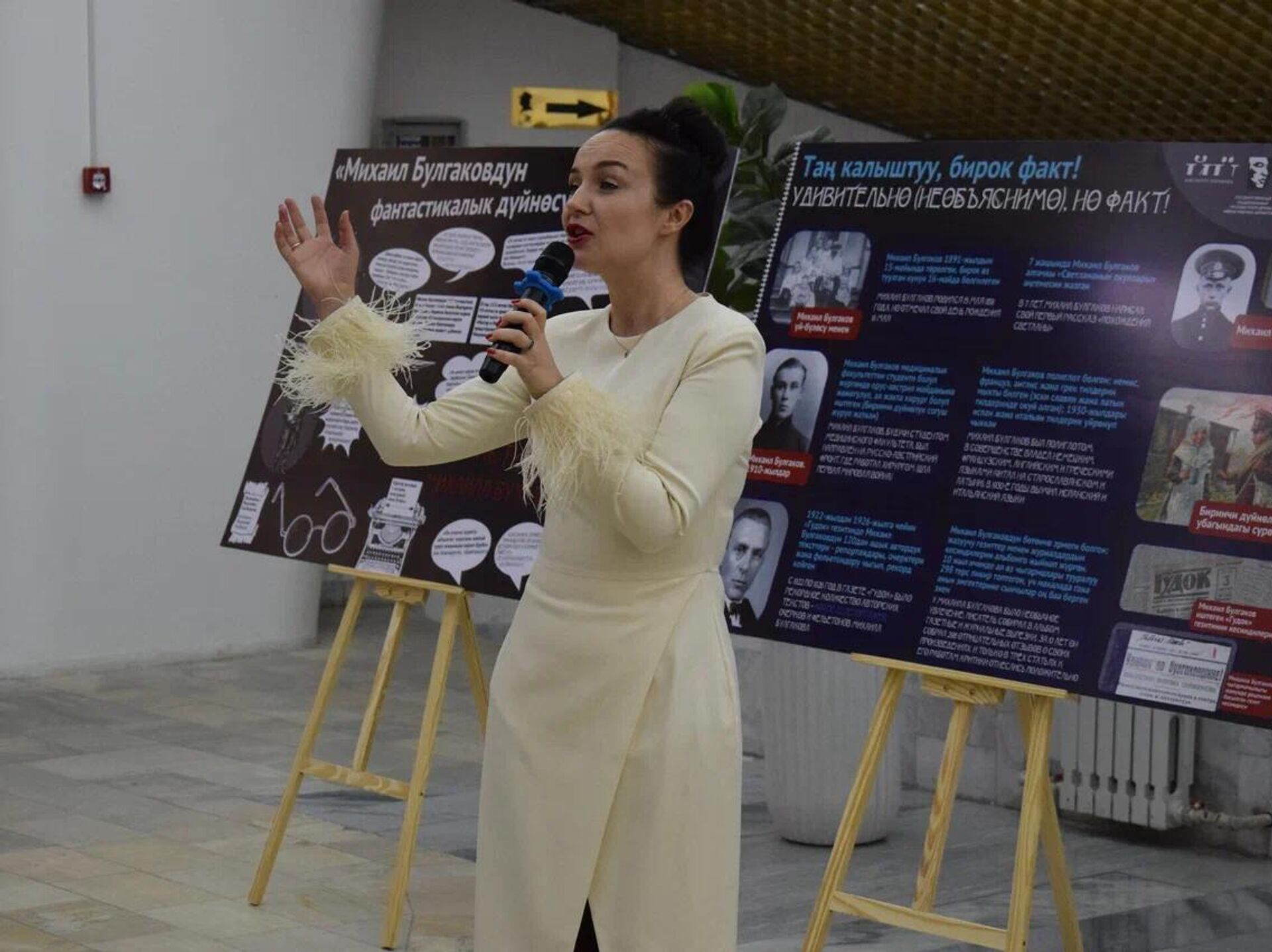 Просветитель Анна Эспарса во Всемирный день театра 27 марта в фойе Русского театра драмы в Бишкеке представила уникальную выставку "Фантастический мир Михаила Булгакова".