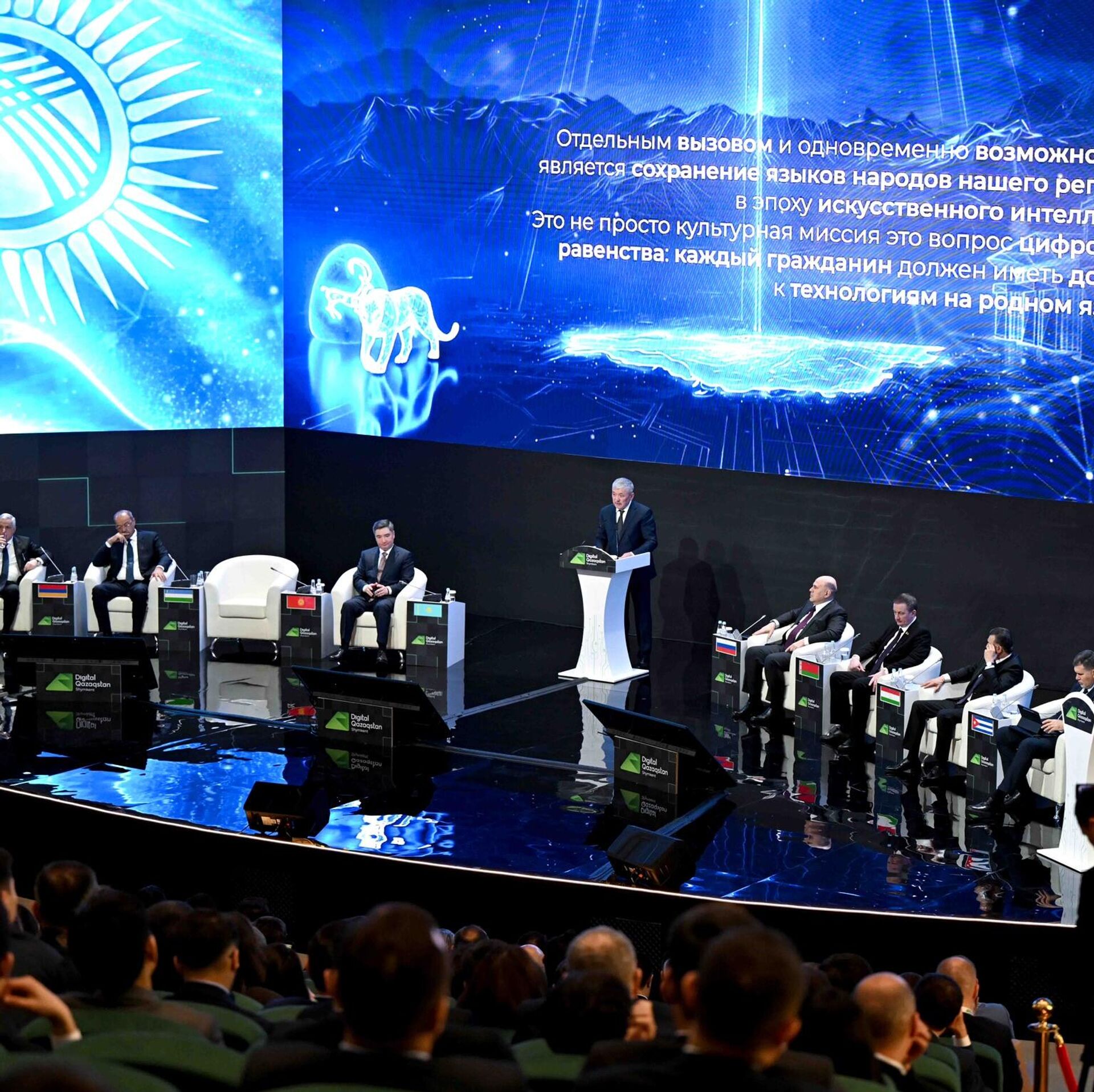 "Отдельным вызовом и одновременно возможностью является сохранение и развитие языков народов нашего региона в эпоху искусственного интеллекта. Мы инициируем создание открытых корпусов кыргызскоязычных данных, развитие языковых моделей и систем машинного перевода. Кроме того, предлагаем рассмотреть реализацию ряда инициатив, таких как создание цифрового финансового хаба для постсоветского пространства, кредитного конвейера для IT-компаний и компаний, занимающихся искусственным интеллектом в регионе, народные инвестиции в общую инфраструктуру для граждан", — сказал Касымалиев.