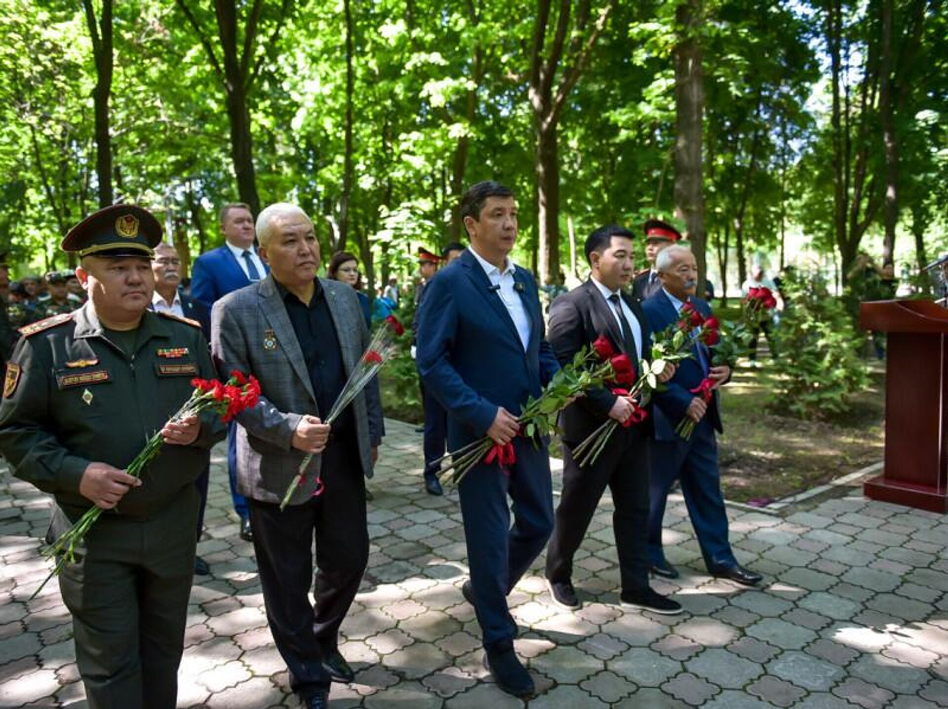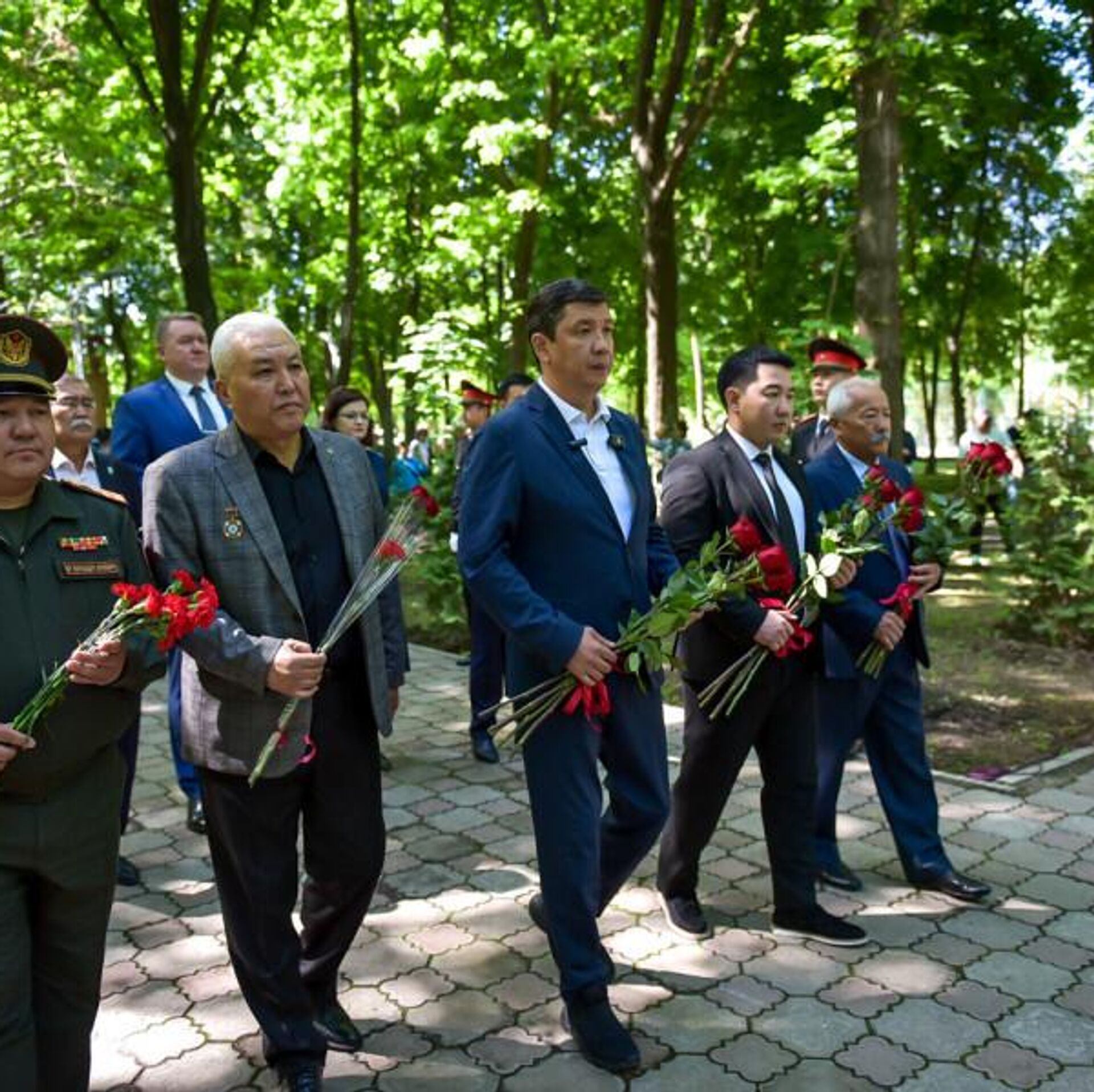 Церемония началась с торжественного возложения цветов к памятнику ликвидаторам, после чего прозвучала минута молчания в память о погибших, а рота почетного караула Национальной гвардии КР произвела троекратный оружейный салют