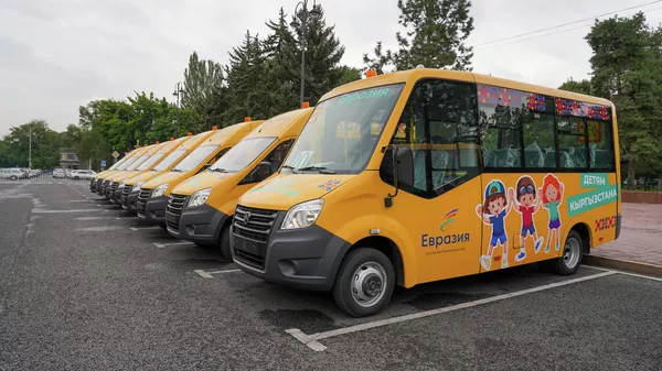 Подарок от АНО "Евразия" — в Кыргызстан прибыли 50 школьных автобусов